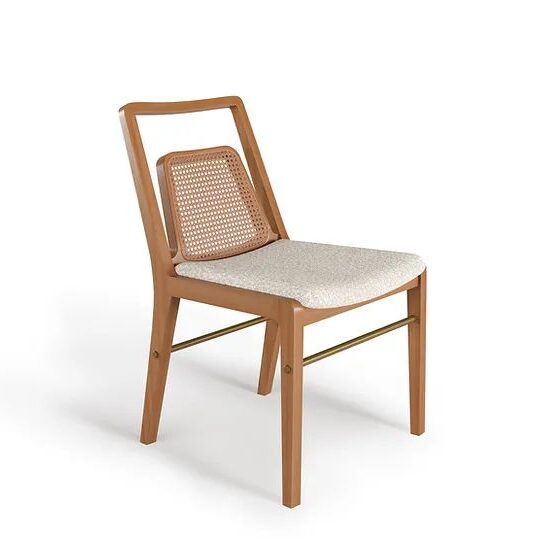 Estrutura em madeira maciça, encosto em tela natural e assento anatômico estofado.